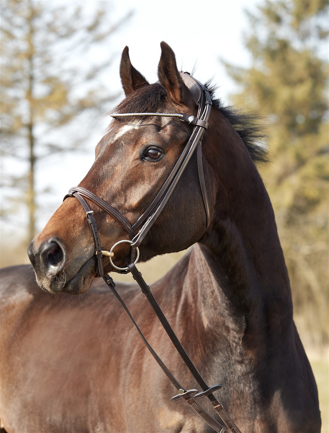 The bridle is designed with buckles on both the right and left sides of the noseband, ensuring optimal balance and a proper fit. Additionally